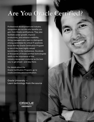 - It contains 22 chapters organized into 5 parts covering topics such as overviews of Fusion development and ADF, developing ADF business components and data models, using the ADF Model, View and Controller, and developing a sample application.