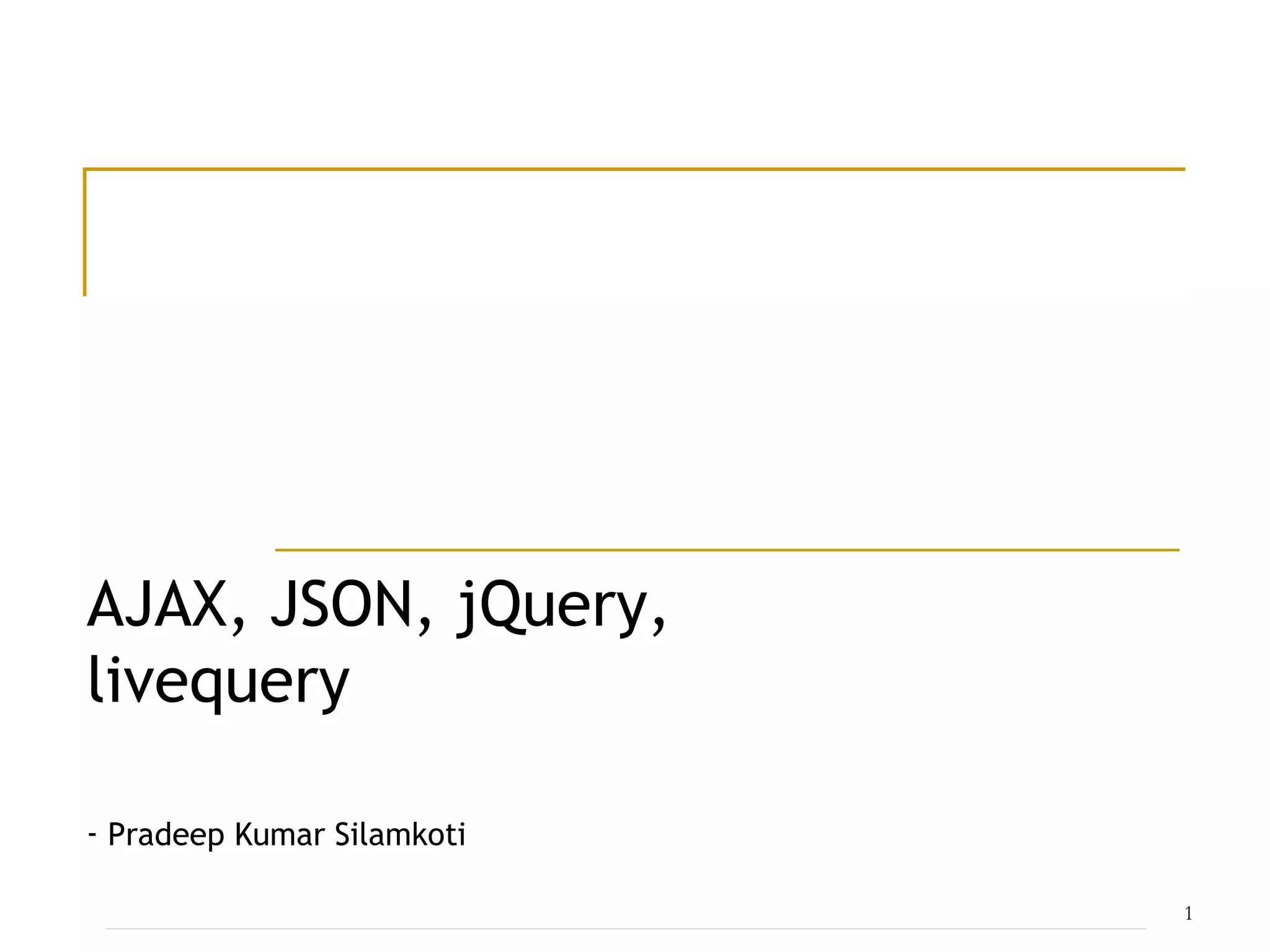 This document provides an overview of AJAX, JSON, jQuery, and livequery. It discusses how these technologies enable asynchronous communication with servers and manipulation of web pages. It also provides examples of using jQuery to select elements, modify attributes and styles, handle events, and perform animations. The document concludes with assignments for demonstrating skills with jQuery selectors, effects, and calendar functionality.