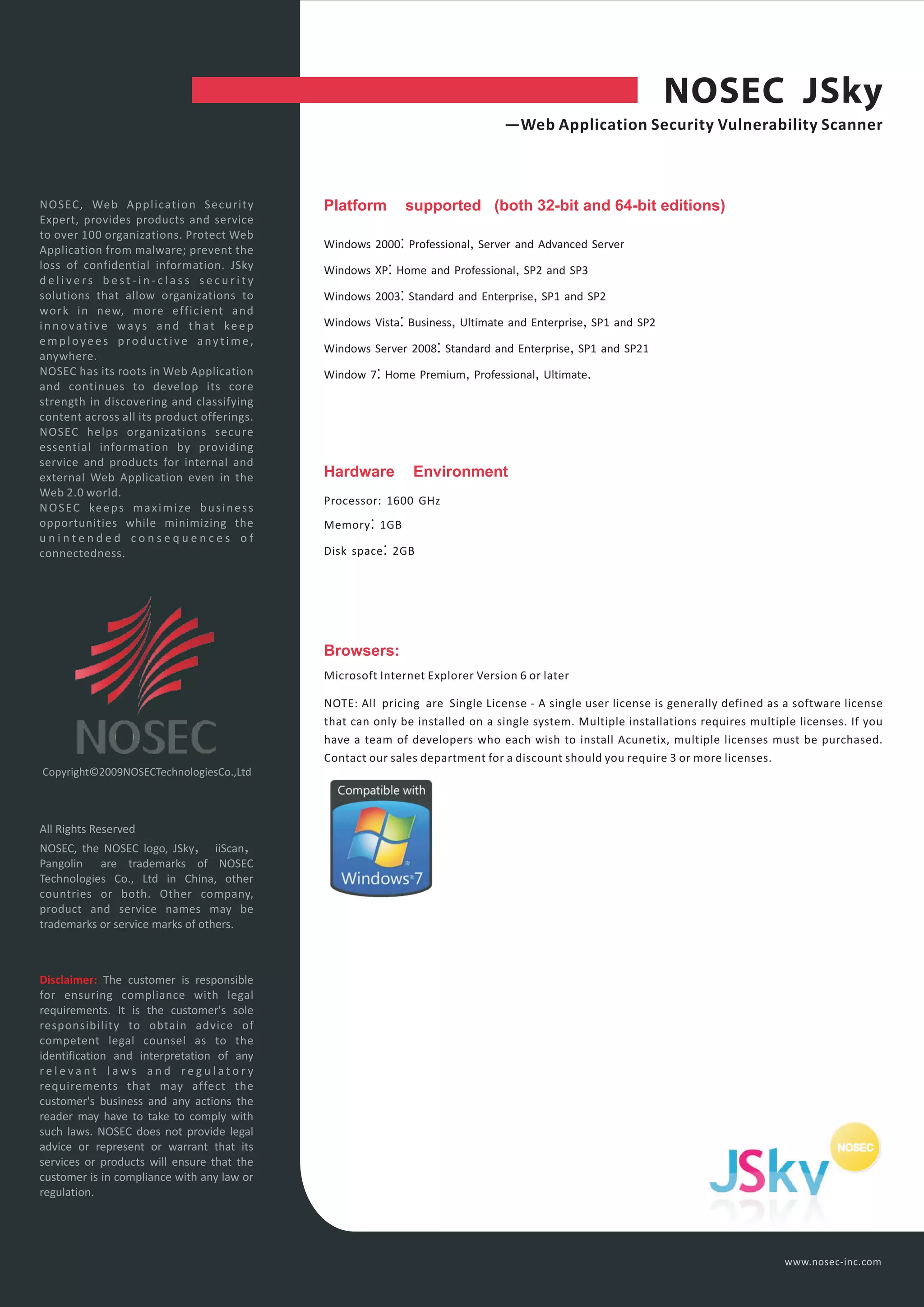 Nosec Jsky is a web application security vulnerability scanner designed for organizations to perform automated assessments without requiring technical skills. It offers features such as black box scanning, malware detection, and customizable scan configurations, supporting various web technologies and compliance needs. The product aims to help protect web applications from vulnerabilities while maximizing business efficiency and minimizing risks.