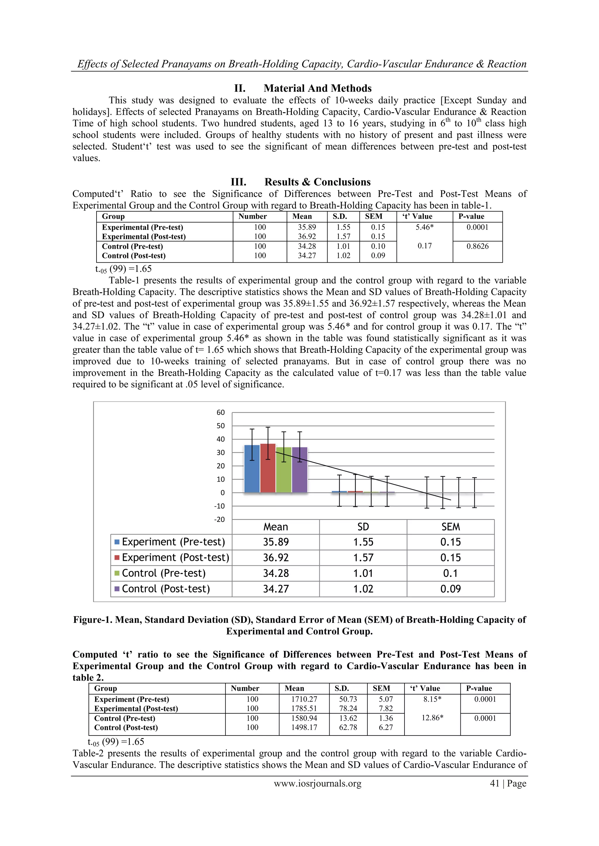 The study assessed the impact of a 10-week pranayama training program on breath-holding capacity, cardiovascular endurance, and reaction time in high school students in Punjab. Results showed significant improvements in the experimental group for all three measures, while the control group exhibited no significant changes. The findings underscore the effectiveness of pranayama in enhancing physiological performance among adolescents.