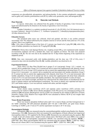 The study investigates the protective effects of Solanum nigrum against lambda-cyhalothrin-induced toxicity in male Sprague Dawley rats. The results indicate that treatment with either dried fruits or ethanolic extract of Solanum nigrum significantly improved body weight, hematological parameters, and liver enzyme levels in intoxicated rats, suggesting its potential as a hepatoprotective and antioxidant agent. Overall, the findings demonstrate that Solanum nigrum has a beneficial effect in mitigating the toxic impacts of lambda-cyhalothrin on liver function.