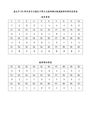 臺北市 101 學年度市立國民中學正式教師聯合甄選數學科筆試答案卷