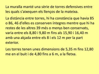 - MURALLA DEGIRONA Les primeres construccions de muralla defensiva de Girona es daten entre els anys 80 i 70 aC, coincidint amb la fundació de Gerunda pel general al servei del Senat Gneu Pompeu Magna, durant les anomenades Guerres Sertorianes, amb l'objectiu de disposar d'una plaça forta que controlés el camí que comunicava Hispània amb les Gàl·lies i amb la península itàlica.