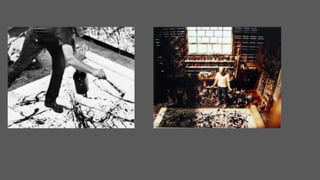 Jackson Pollock was an American painter known for his unique style of drip painting. He created abstract expressionist works by pouring and splattering paint onto large canvases in a spontaneous manner. Pollock's painting No. 31 from 1950 demonstrates his signature technique of dripping and splattering paint directly from the can or stick onto an unstretched canvas on the floor.