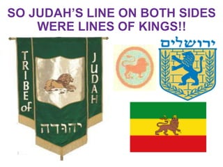 The document discusses the importance of the tribe of Judah in biblical scripture, highlighting their leadership qualities and military victories as depicted in Genesis. It emphasizes key events, such as Judah's repentance and significant blessings, culminating in the prophetic implications for Jesus Christ as the Messiah. Additionally, it contrasts the southern kingdom of Judah's stability and significance with the northern kingdom of Israel, underscoring Judah's preeminence in biblical history.