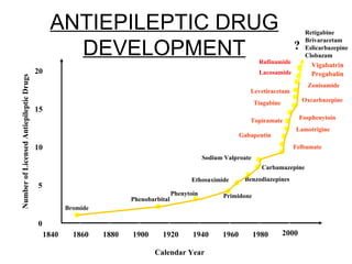 This document discusses issues related to new and generic antiepileptic drugs (AEDs). It notes that while new AEDs have been introduced, the percentage of patients with uncontrolled seizures remains around 40%. Both new "revolutionary" drugs that work via novel mechanisms and "evolutionary" drugs that improve existing ones are needed. Several new AEDs are described including retigabine, brivaracetam and eslicarbazepine. Concerns about generic AED substitution include potential differences in formulations and lack of studies on risks of switching between generics. Physician oversight is recommended when changing AED preparations.