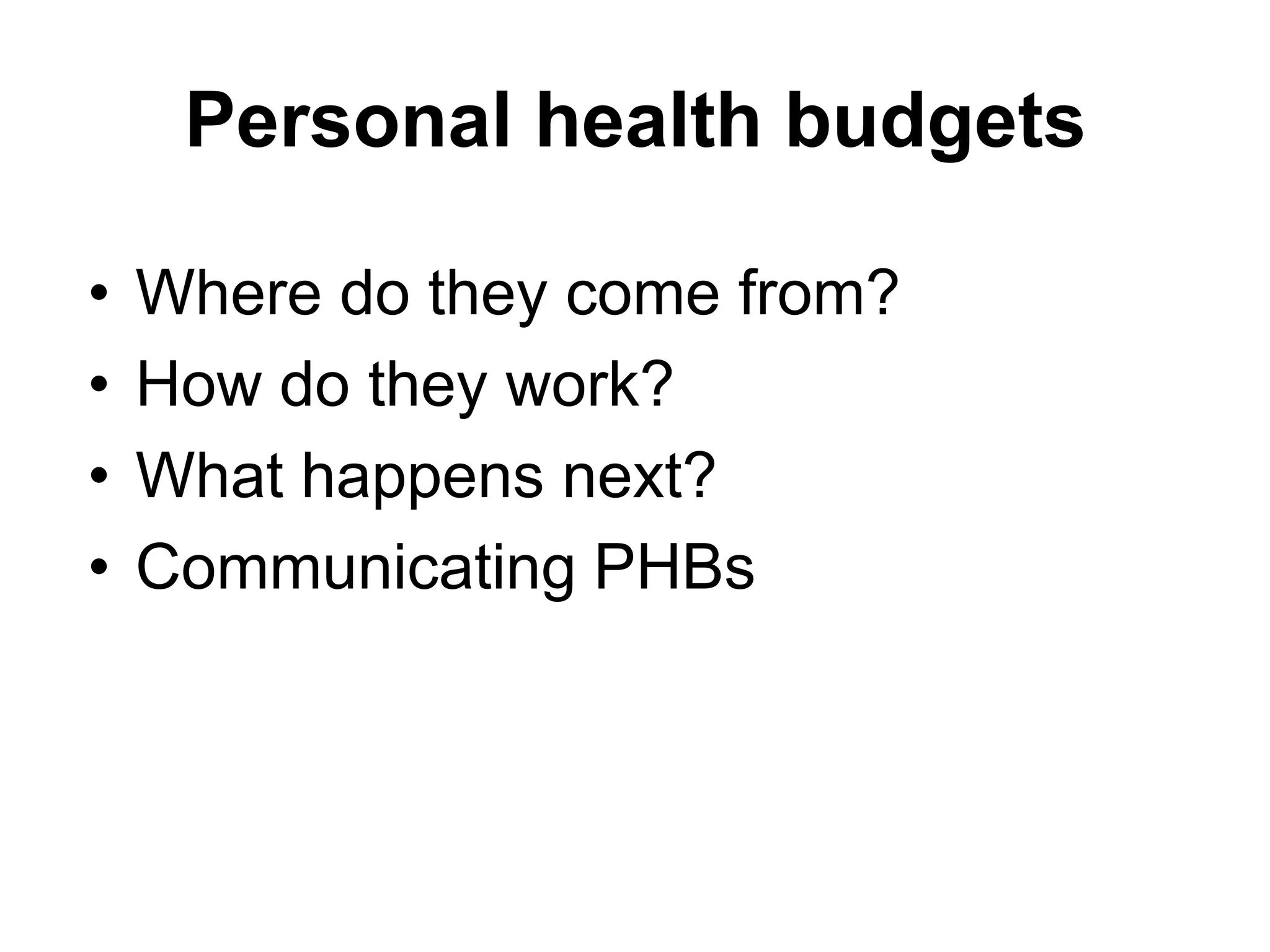 Personal health budgets (PHBs) aim to personalize public services by allowing individuals to have more control over their health care, helping them to meet their specific health goals. The pilot program, involving over 2,700 participants, demonstrated various benefits and provided insights into effective implementation, while challenges regarding public perception and communication remain. The UK government plans a national rollout of PHBs and has allocated funding to support this initiative, focusing on collaborative care planning between healthcare professionals and individuals.