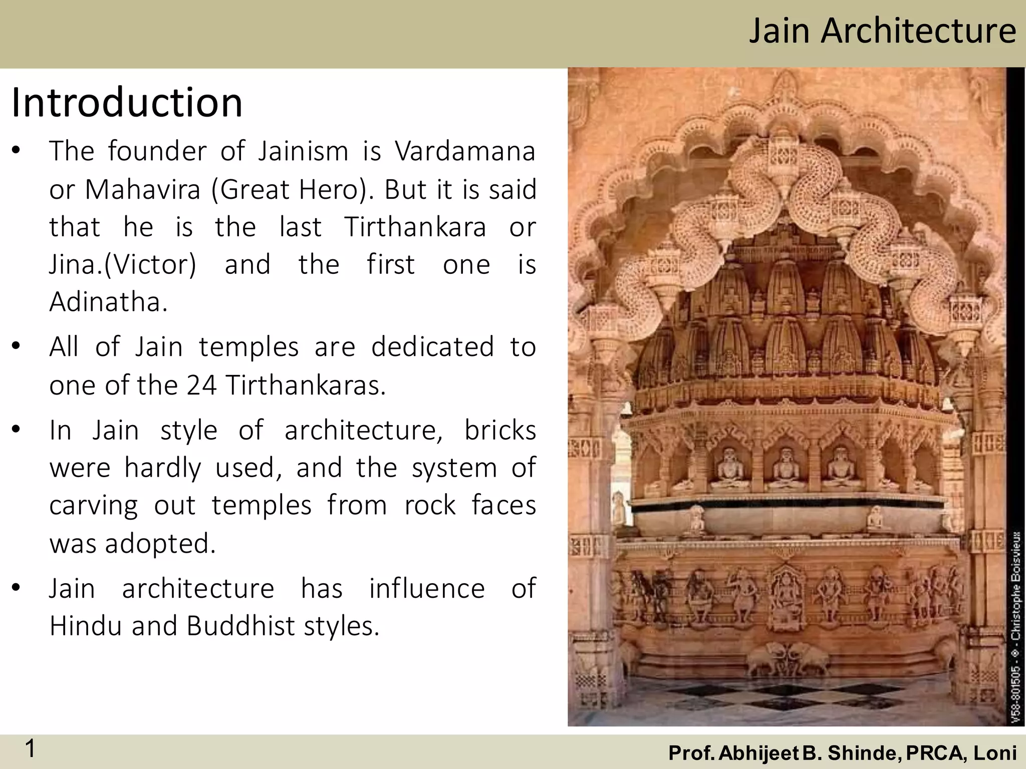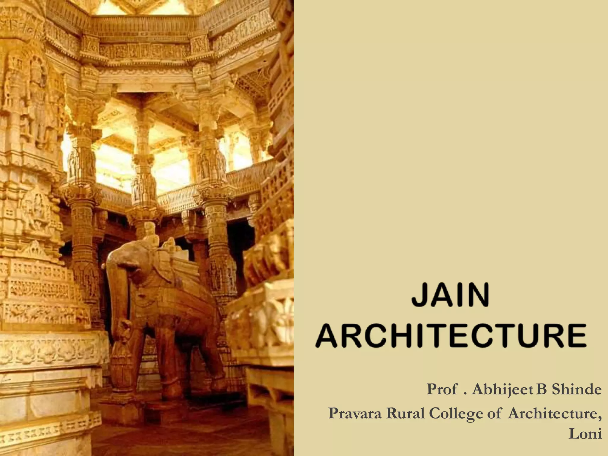 The document summarizes Jain architecture, focusing on temples at Dilwara and Ranakpur. It discusses how Jains built temple cities on hills according to concepts of immortality. It describes key architectural features of temples like the Adinatha temple at Ranakpur, known for its intricate carvings, and the Dilwara temple complex near Mount Abu, which contains five unique marble temples renowned for their ornate stonework. The temples at Dilwara were built between the 11th-13th centuries and include the Vimal Vasahi and Luna Vasahi temples noted for elaborate ceilings, pillars, and domes.