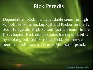 - Todd is the starting quarterback but cheats on his girlfriend Didi