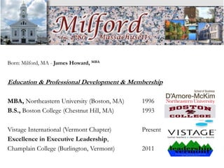 James Howard is a president and CEO with an MBA from Northeastern University and a BS from Boston College. He transitioned a specialty contract manufacturer of bar soap into a global skin care products manufacturer approved by the FDA, developing patents and licensing agreements. As a formulary leader, he compounded client-driven products and created an intellectual property renewal revenue model. His areas of successful leadership include technology and product management, career growth, and differentiating business opportunities that create profitability and societal good.