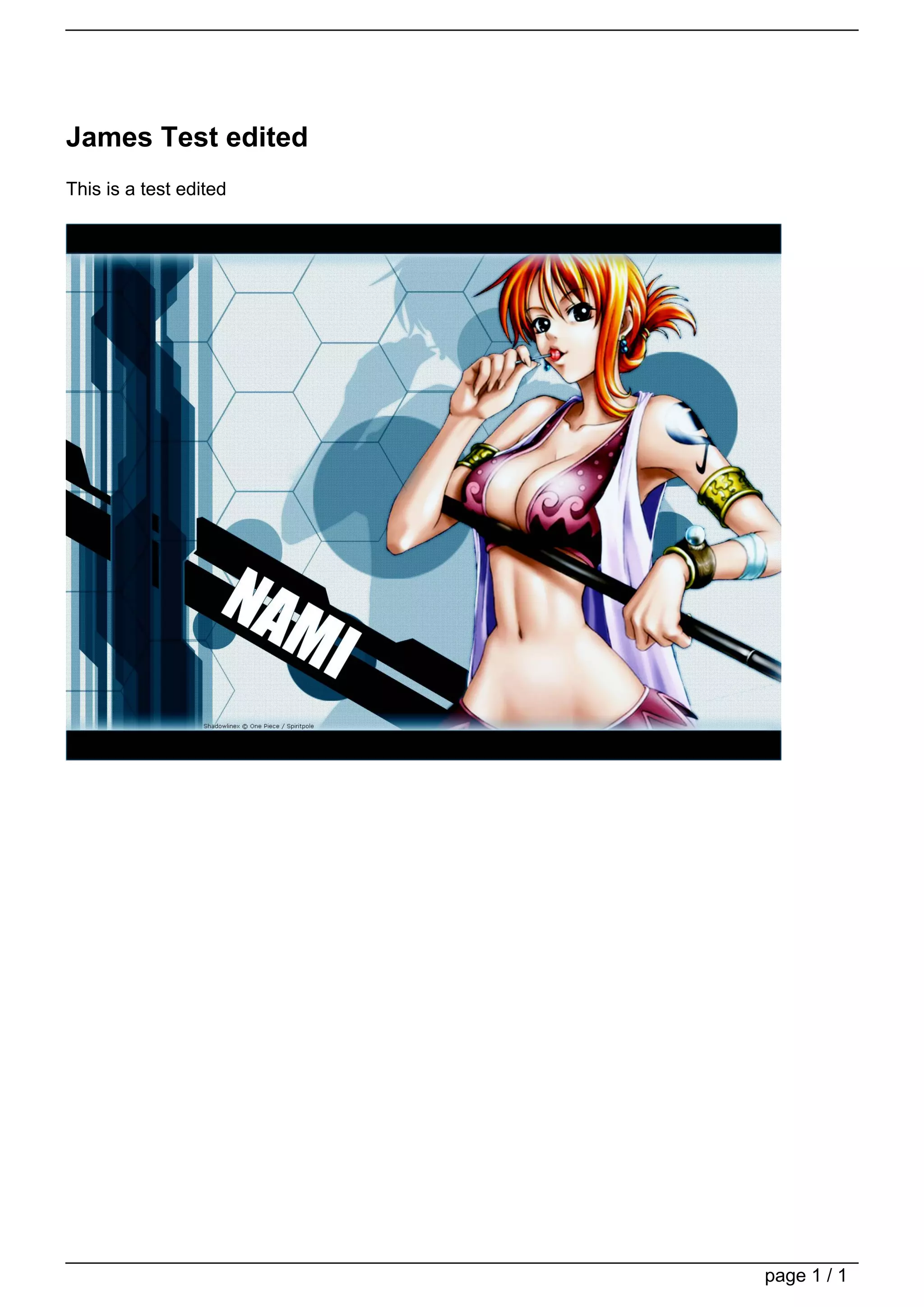 This one sentence document discusses a test edit by James Test. It provides his name and states that this is a test edit with no other details or context provided.