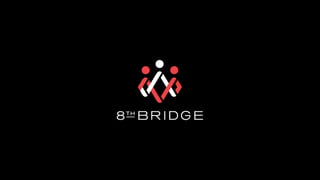 The document discusses 8thBridge, a social shopping pioneer that provides social commerce solutions. It summarizes that 8thBridge enables brands to create social shopping experiences for customers by allowing social commerce actions like product likes to drive social proof and sharing on Facebook. This sharing then drives more shopping activity and time spent with brands on the platform. The document also provides information on how brands can get started with 8thBridge's solutions by setting goals, designing configurations, and integrating their technology.