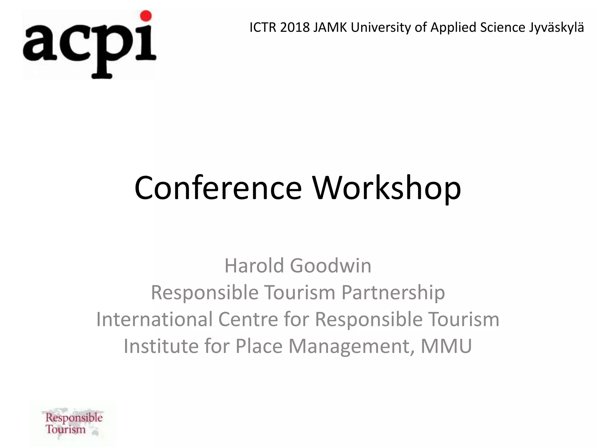 This document discusses the challenges of overtourism and sustainable tourism development. It provides a history of sustainable development concepts and frameworks from the 1970s to present. It notes that while sustainability has been discussed for decades, progress has been too slow and overtourism is a consequence. The document examines causes of overtourism like increased travel affordability and seasonality. It also discusses managing tourism demand and supply through approaches like capacity limits, demarketing, and privileging local access. Finally, it argues for evidence-based management, stakeholder collaboration, and prioritizing resident well-being over business interests to regulate tourism development successfully.
