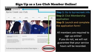 The Leo Club meeting document summarizes upcoming events and volunteer opportunities for the club. It provides details on club meeting etiquette, instructions for purchasing a required T-shirt, policies around absences, and thanks volunteers. Schedules and locations are given for upcoming orientations assisting new international students. Lists of volunteers are provided for orientations on January 27th, 28th, and 29th. The final event mentioned is a Valentine's Day rose sale fundraiser.