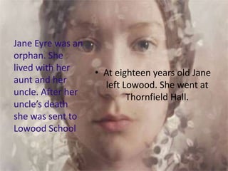 Jane Eyre lived as an orphan and was sent to Lowood School after her uncle's death. She became the governess of Adèle Varens at Thornfield Hall, where she met and fell in love with the owner, Mr. Rochester. Their wedding was stopped when it was revealed Rochester already had a wife. Jane ran away but later reunited with Rochester after his wife died in a fire at Thornfield Hall. They married and lived happily ever after with their child.