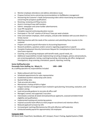 Janet Castillo is seeking a challenging position that utilizes her 15 years of experience in customer service, public relations, and staffing. She has excellent communication and organizational skills. Her resume highlights experience interviewing and placing candidates as a senior staffing specialist and recruiter.