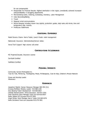 Janie Smith has over 20 years of experience in customer service and regional training. She currently works as a Regional Lead Trainer and Department Sales Manager for Food Lion, where she provides training to managers and oversees 11 associates. Her objective is to take on more of an associate relations role through additional training and support. She has strong communication, leadership, and organizational skills and expects to graduate with a BBA in Human Resources Management in 2018.
