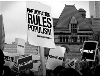 This document provides an overview of the structure and topics to be covered in a social media class. It includes sections on class structure, required and suggested reading, grading, accessing class content, topics to be discussed such as innovations in social media and applying social media to marketing. It also includes quotes about social media and participation in the class. The instructor's objectives are listed as theory, application, tools, and ongoing topics. Students are asked what their objectives are for the class.