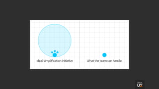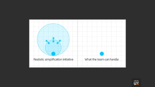 The document explores how user experience designers simplify complex systems for organizations, discussing the importance of collaboration, user research, and maintaining scope. It highlights the challenges faced in large enterprises, such as the growth of teams and the influence of various voices, while advocating for strategies to advocate for simplicity and adaptability. The presenters emphasize the need for effective communication, building relationships, and continuous learning to enhance UX processes.