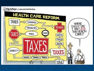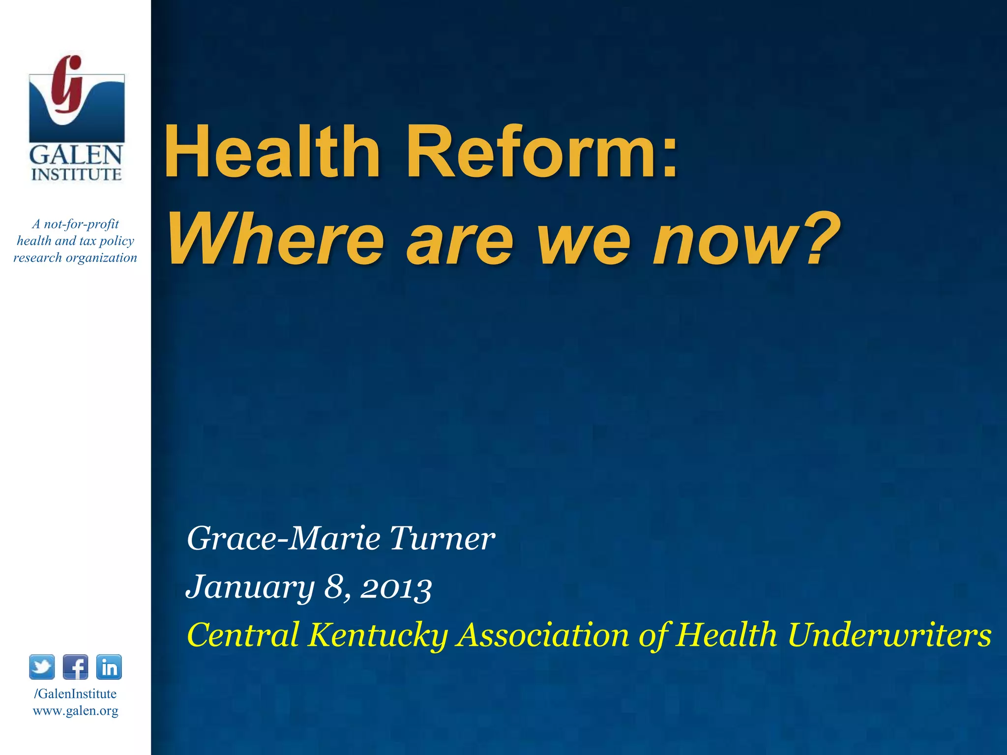 The document summarizes the current state of health reform in the United States after the Supreme Court ruling upholding the Affordable Care Act. It discusses public opinion polls showing that a majority of Americans oppose the health reform law and believe it will make things worse. It also outlines ongoing resistance movements from governors, citizens, employers, and Congress. The document analyzes impacts on employers from new taxes and penalties as well as effects on employees from rising costs and responsibilities under the reform. It concludes by arguing for market-based, state-led alternatives that enhance choice, value, and focus on the patient rather than government control over healthcare decisions.