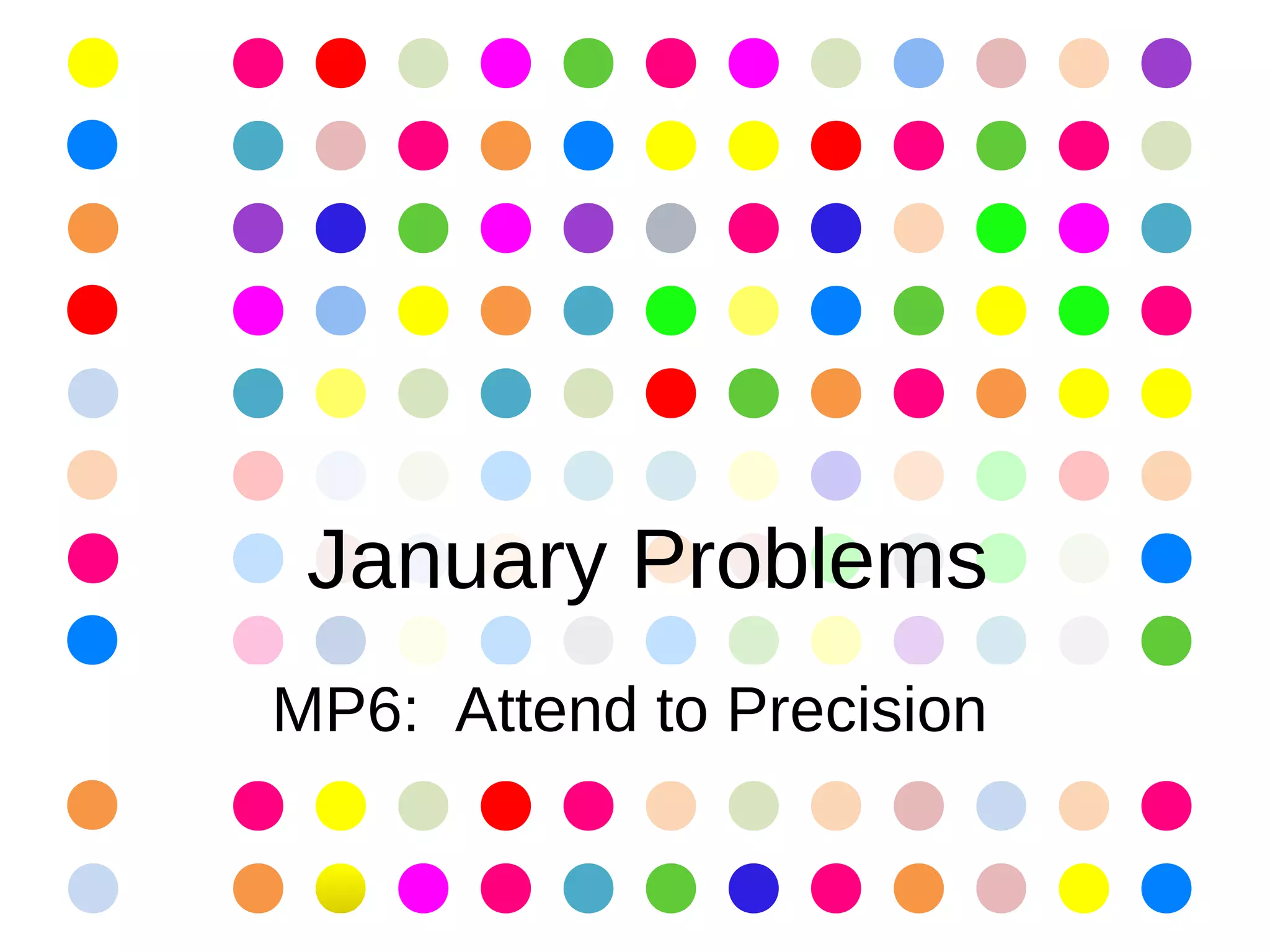 The document contains summaries of math problems from January, with one problem presented each day. The problems cover a range of topics including algebra, geometry, number patterns, and word problems involving rates, ratios, and percentages.