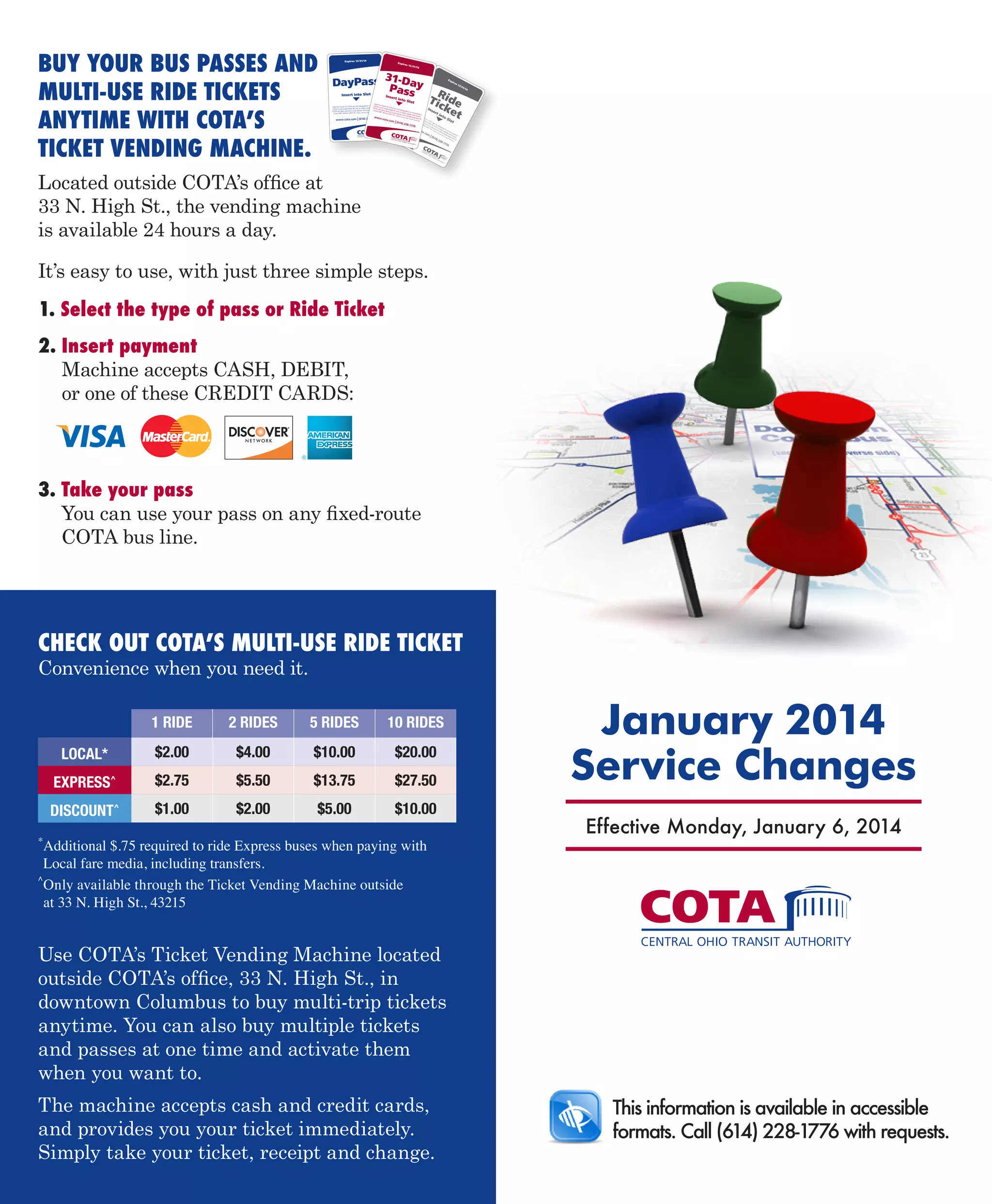 49 Southeast - Trip times are modified to provide an earlier trip leaving Nationwide & High at 3:45 p.m. Travel times are adjusted to improve on-time performance.