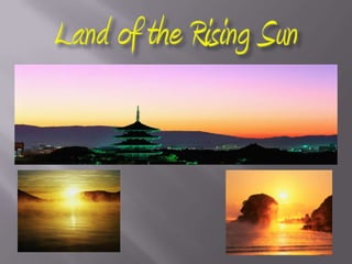 Japan is an archipelago of over 6,000 islands located in East Asia. It has a rich cultural heritage exemplified by traditions like geisha entertainers, samurai warriors, and the Japanese tea ceremony. The economy has transitioned from a focus on exports of goods like electronics and cars to the US and other countries to the third largest economy in the world today, with a GDP of almost 5 trillion. Key aspects of government and society include the Emperor, National Diet legislature, and Prime Minister-led administration governing over 125 million people from the capital of Tokyo.