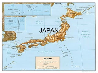 Japan has a history and culture with unique aspects like bowing as a greeting. The economy focuses on automobiles, electronics, and manufacturing. Exports include transportation equipment and machinery while imports consist of fuels, foodstuffs, and raw materials. Business etiquette involves not touching others and following standard work hours.