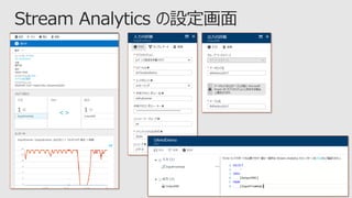 ストリームデータのリアルタイム処理 データの集計、変換、結合などを実施 ・IoT Hub ・Event Hub ・Blob