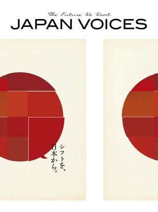 ッ と日本 Interview 2 アーヴ ンラズロ博士 ィ Interview 3 野中ともよ Interview 4 田中優 Interview 5 中野裕之 Interview 6 広瀬敏通 Interview 7 Voices from Fukushima Interview 8 熊野英介 Interview 9 Voices of HOPE 「The Future We Want. JAPAN VOICES」は 一般社団法人環境パートナーシップ会議が作成しました。 編集長 中村祐介(株式会社エヌプラス) 編集 西岡舞子 翻訳 森佳美(同志社女子大学) 石井彩菜(同志社女子大学) 大石智奈美 西岡舞子 アートデ レクション、 ィ デザイン 加藤英一郎 汐月陽一郎(株式会社chocolate.) プログラム 株式会社エヌプラス 写真 生駒安志 ペータ 協力 地球サミ ト2012ジャパン、 ッ アドビ システムズ 株式会社、東京リスマチック株式会社、一般社団法人ワールドシフトネットワークジャパン この本は「独立行政法人環境再生保全機構地球環境基金」の助成を受けて制作されました。 Copyright © Environmental partnership council / Earth Summit 2012 Japan