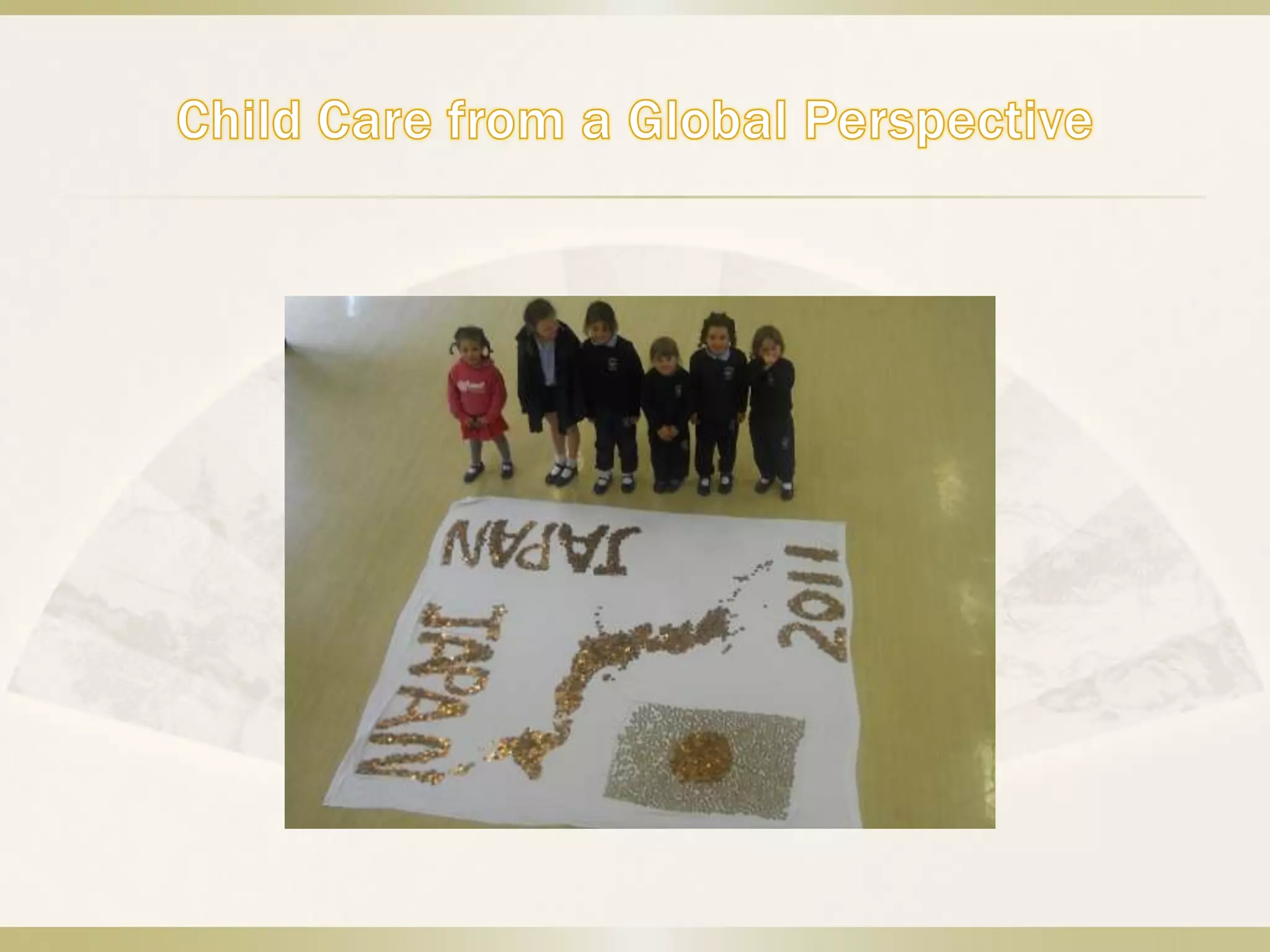 The document outlines the history and current state of childcare in Japan. It traces the origins of kindergartens back to 1871 and daycare centers in 1890. Today, the formal childcare system includes kindergartens overseen by the Ministry of Education for children ages 3-5 and daycare centers overseen by the Ministry of Health and Welfare for children ages 0-5. Attendance in preschool education has increased from 26.9% in the 1960s to 100% for ages 4-5 currently. The underlying philosophy focuses on teaching children etiquette, independence, and confidence. Childcare workers require certification and their roles include health and safety, curriculum development, and partnering with parents.
