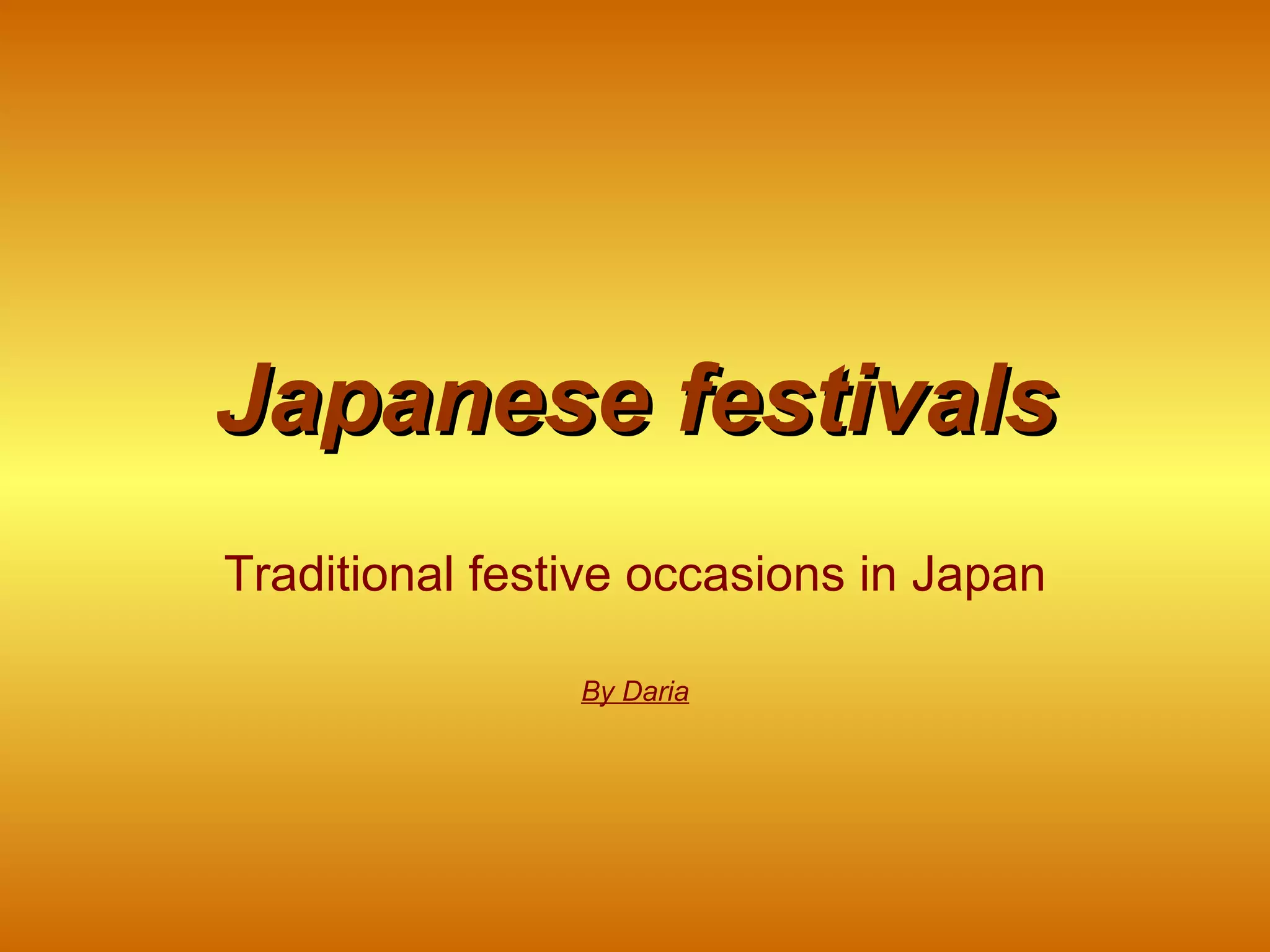 Japanese festivals have both religious and secular celebrations throughout the year. Some of the major festivals include New Year celebrations from January 1-3 where families gather, exchange cards, and eat soba noodles. In March, the Doll Festival honors girls and involves viewing decorated dolls. Hanami in April celebrates cherry blossom viewing with parties and picnics. Boy's Day in May celebrates boys with carp streamers and rice cakes. Tanabata in July involves writing wishes on paper to hang on bamboo. The Bon Festival in August honors ancestors at family graves. The "7-5-3" Festival in November has children visiting shrines for safety. Ōmisoka on December 31 celebrates the new year