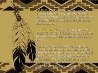 Haiku is a significant form of traditional Japanese poetry. It is characterized by a structure of 17 syllables divided into three units of 5, 7, and 5 syllables. Today, haiku continues to be celebrated for its concise and evocative expression.