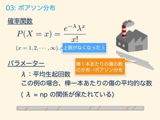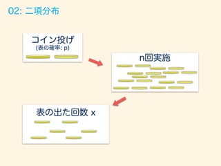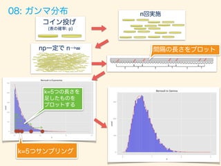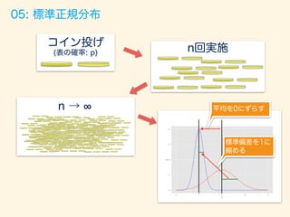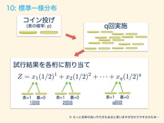 「全ての確率はコイン投げに通ず」 2015/12/5 Japan.R 発表資料 様々な確率分布をベルヌーイ分布(コイン投げ)との関係性で説明をしてみるというスライドです。 Pythonバージョンのコード: https://github.com/matsuken92/Qiita_Contents/blob/master/random_variables/random_variables.ipynb