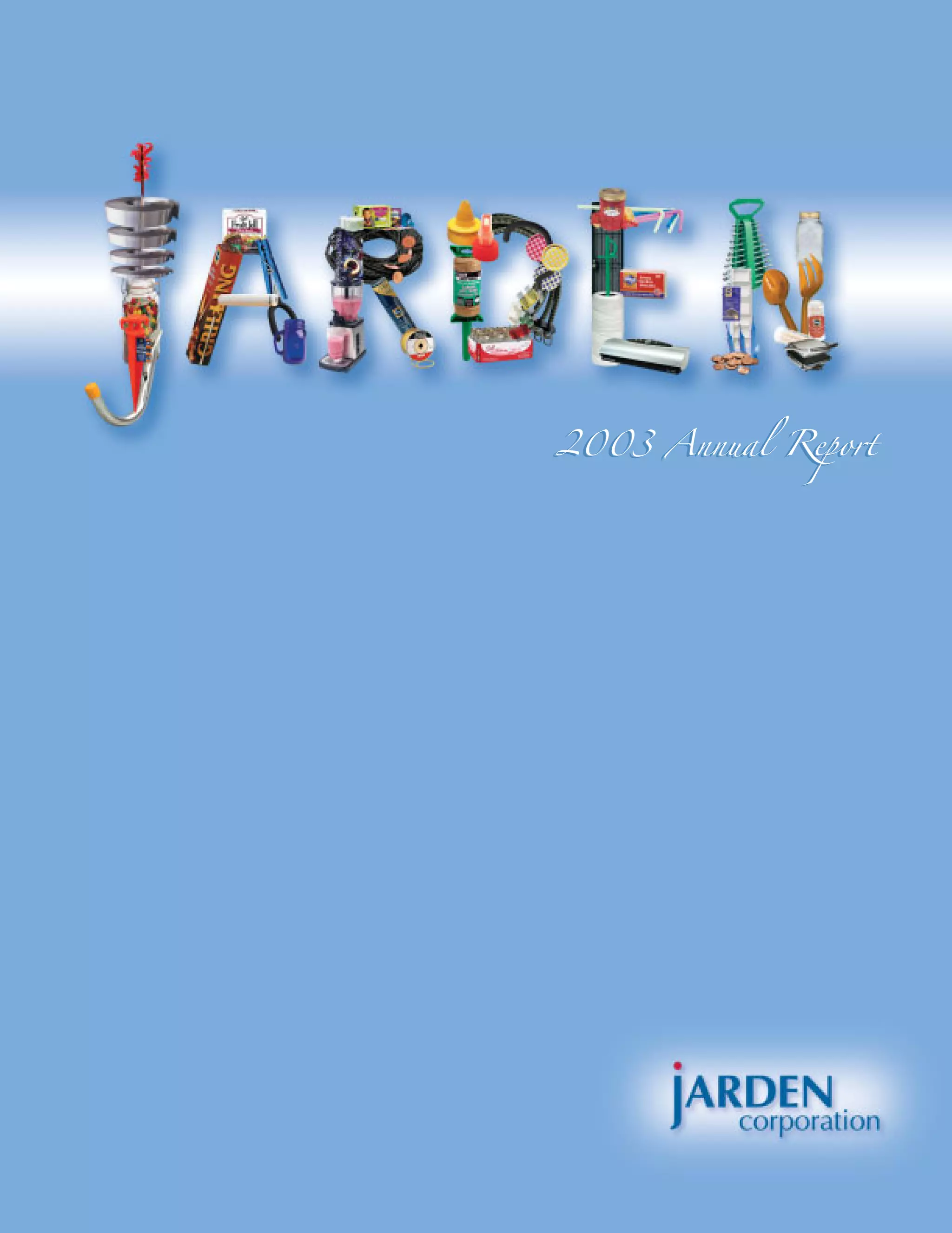 The 2003 annual report summarizes Jarden Corporation's financial and operating results for the year. It discusses record financial performance with revenues surpassing $500 million and cash flow from operations exceeding $70 million. It also highlights the acquisitions of Diamond Brands and Lehigh Consumer Products, which added over $250 million in annual revenue. The Chairman expresses optimism that this is just the beginning and that Jarden will continue executing its strategy to deliver strong growth.