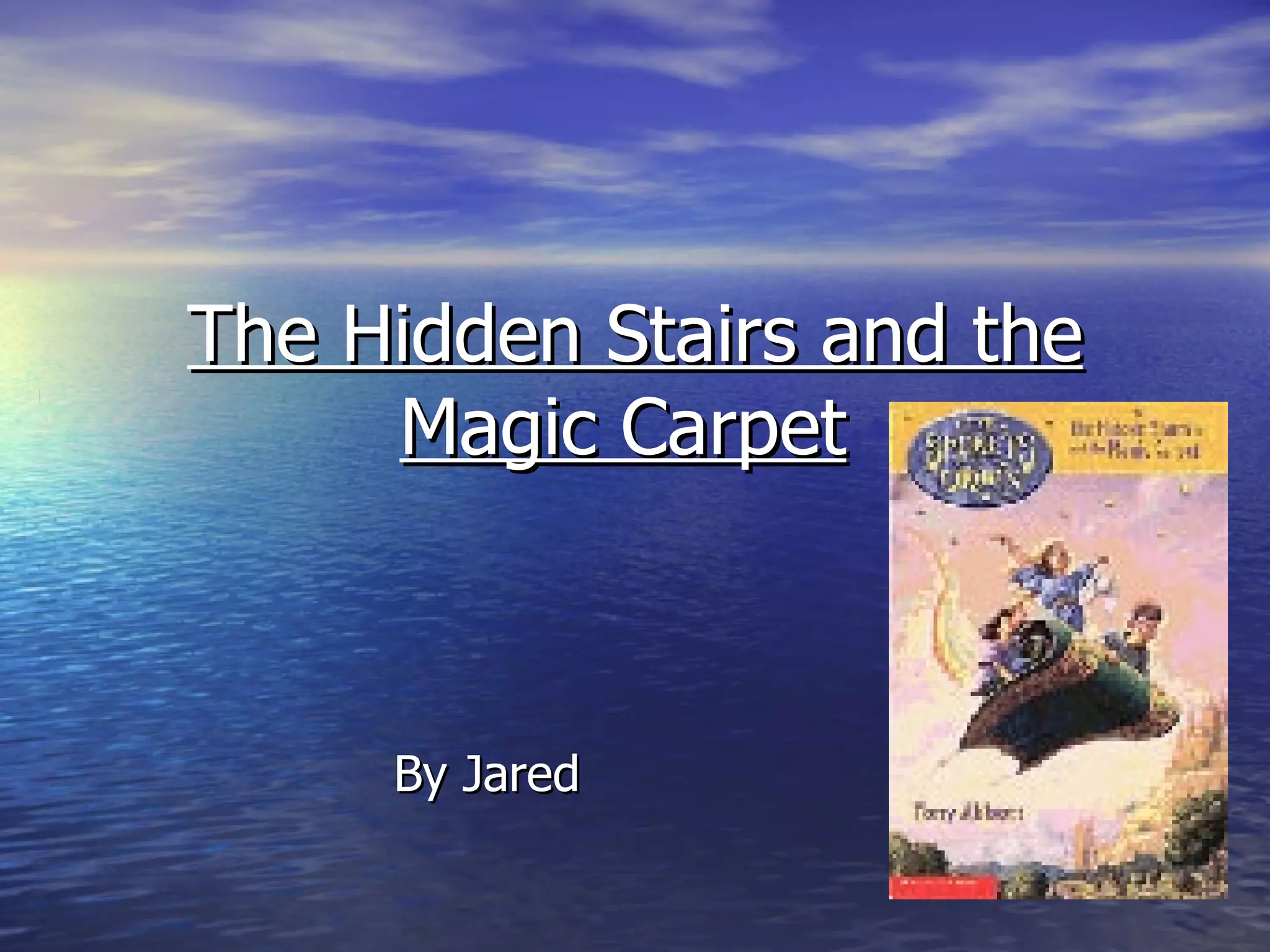 The document summarizes the children's fantasy book "The Hidden Stairs and the Magic Carpet" by Tony Abbott. It describes the main characters Eric, Neal, Julie, and Princess Keeah and their adventure in the magical land of Droon where Lord Sparr tries to capture Princess Keeah. Additional details provided include that the author Tony Abbott was born in Ohio, has written over 60 children's books, and now lives in Connecticut with his family.