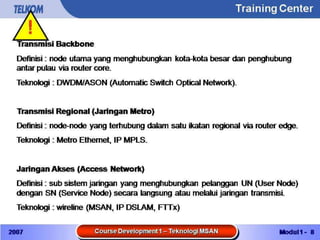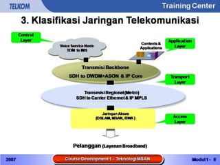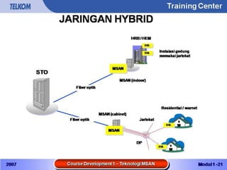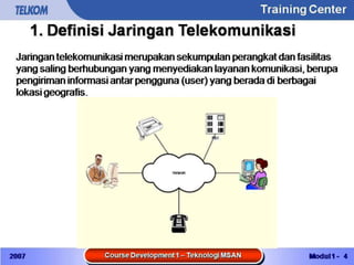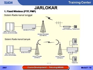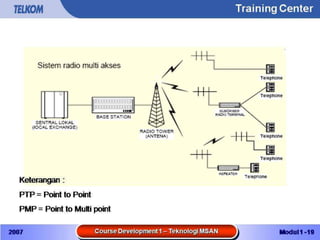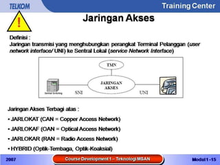 Jaringan akses telekomunikasi memungkinkan pengguna untuk terhubung ke jaringan inti. Jaringan akses meliputi kabel tembaga, serat optik, nirkabel, dan satelit. Jaringan akses memberikan layanan telekomunikasi ke pelanggan akhir.