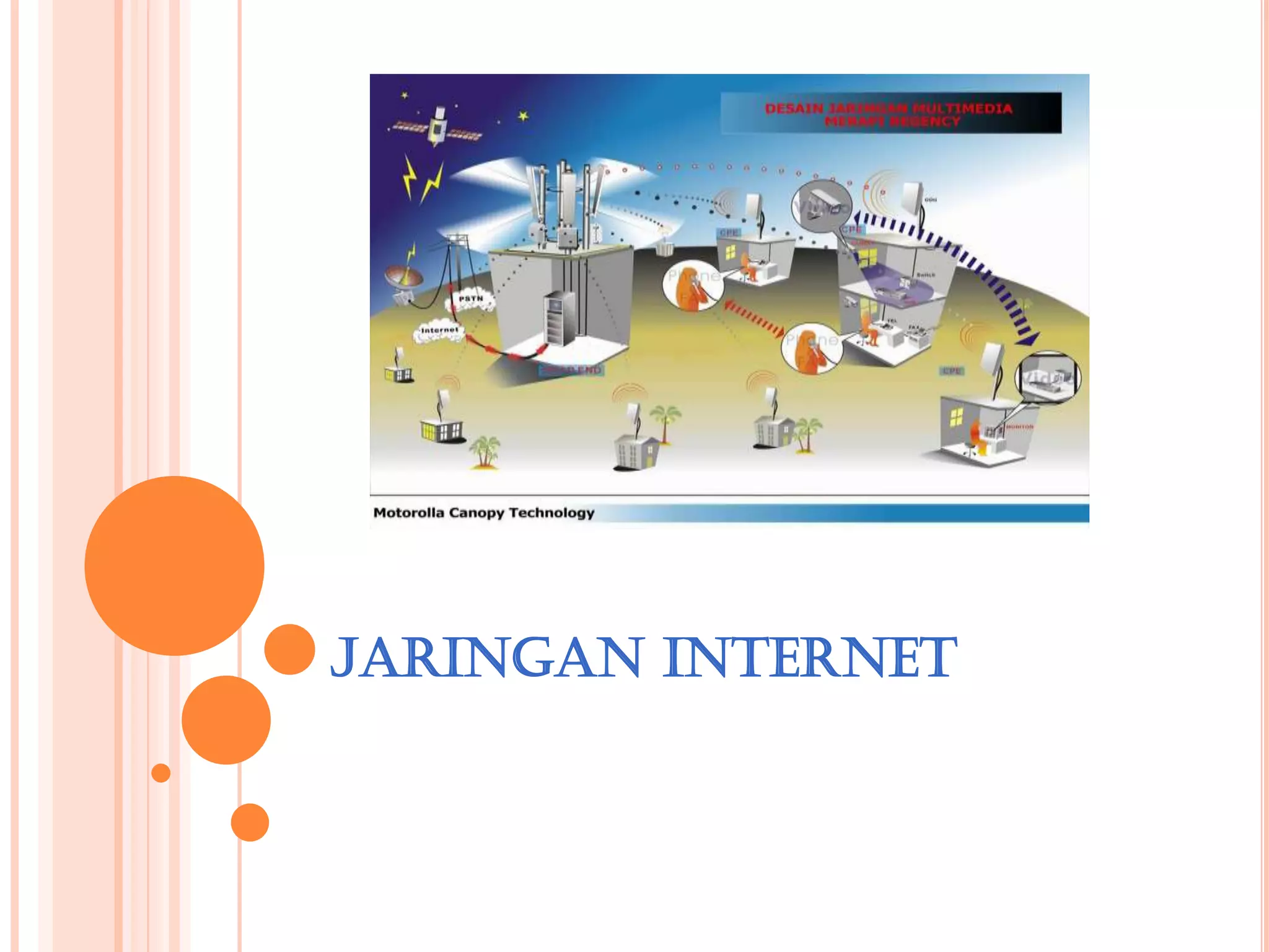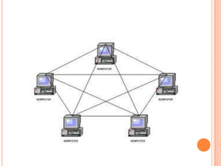 Teks tersebut membahas tentang jaringan komputer dan internet. Jaringan komputer terdiri dari dua atau lebih komputer yang terhubung untuk berbagi sumber daya. Ada beberapa jenis jaringan seperti LAN, MAN, WAN, dan internet yang menghubungkan berbagai jaringan di seluruh dunia. Jaringan komputer memiliki berbagai manfaat seperti berbagi sumber daya, integrasi data, dan komunikasi.