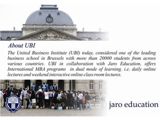 Jaro Education in collaboration with the United Business Institutes, Belgium- Europe offers International MBA degree.