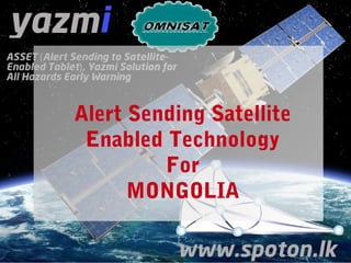 The document discusses Yazmi's satellite-enabled technology designed to improve disaster communication and alertness, providing connectivity to 5 billion people across multiple continents through portable devices like tablets. It highlights the functionality of the Yazmi satellite receiver and its application in various sectors, including healthcare and education, while noting challenges such as message clarity and language barriers. Furthermore, it outlines the technical specifications and advantages of using satellite communication over traditional infrastructures in areas prone to disasters.