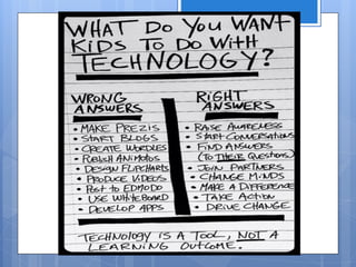 The document discusses personalizing learning tools in the age of Common Core standards. It outlines a presentation given by Jason Borgen, Dr. Lisa Gonzales, and Tim Landeck at an ACSA conference in January 2014. The presentation explored using web 2.0 tools to personalize learning, integrating tools that support anytime/anywhere learning, creating a model classroom and pilot program before scaling up, and discussing implementation challenges and strategies. The document provides examples of online tutorials, digital textbooks, multimedia creation tools, and mobile apps that can be used to personalize learning as well as tips for successful implementation.