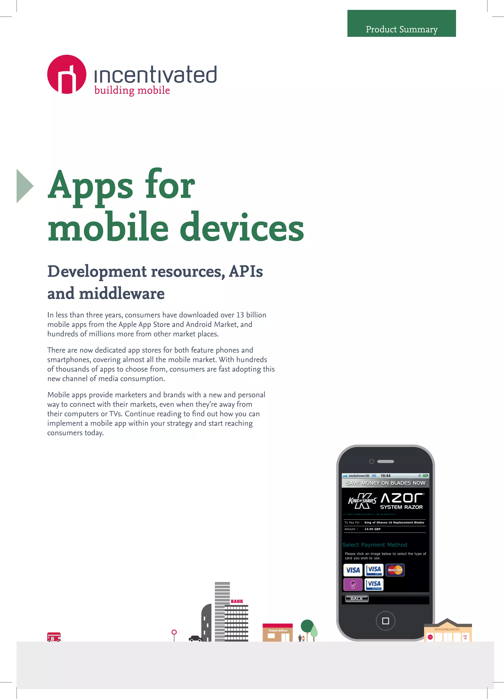 This document provides a product summary for developing mobile apps. It discusses how mobile apps can connect brands with customers and provide functionality like location services, augmented reality, and payments. The summary also outlines two approaches for developing cross-platform or native apps, and services offered like content management, analytics, and app marketing. Mobile apps are a powerful way to engage customers who rely on their phones.
