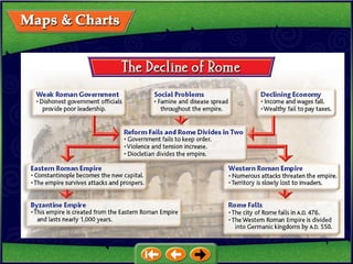1. Life in Ancient Rome - It discusses Roman cultural achievements like architecture, art, literature and daily life including roles of men, women, and slaves.