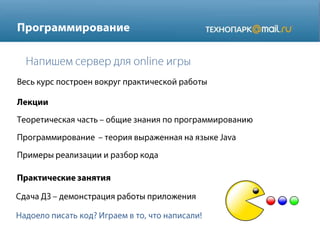 Документ представляет собой лекцию по введению в Java, затрагивающую синтаксис запуска Java-приложений и параметры командной строки. Описываются ключевые настройки, такие как размеры кучи и сборка мусора. Включает ссылки на ресурсы для загрузки и руководства по использованию Jetty.