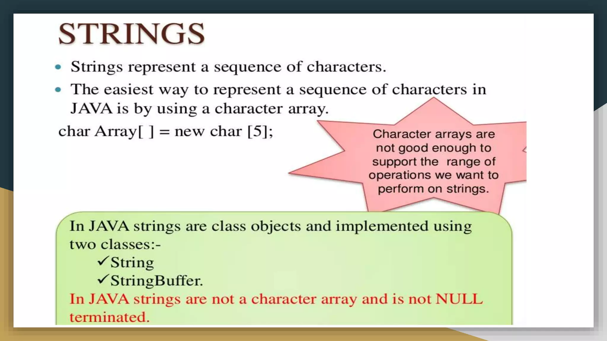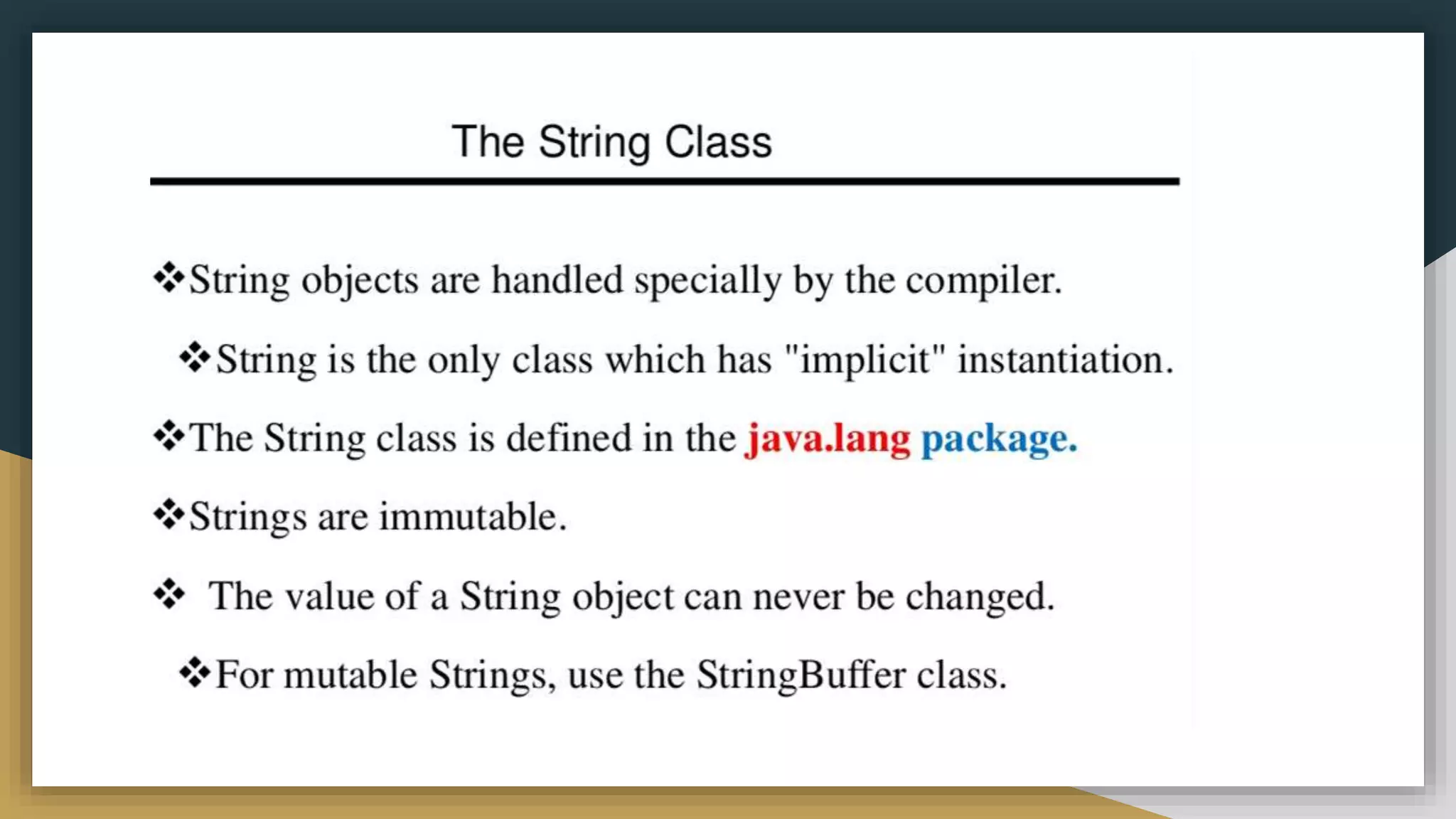 imported. They include classes for primitive types, strings, maths function, threads & exception.