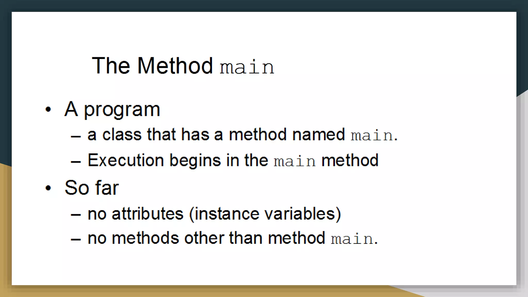 ❏ This listing would be saved as a file called class1.java & located in a directory named mypackage.