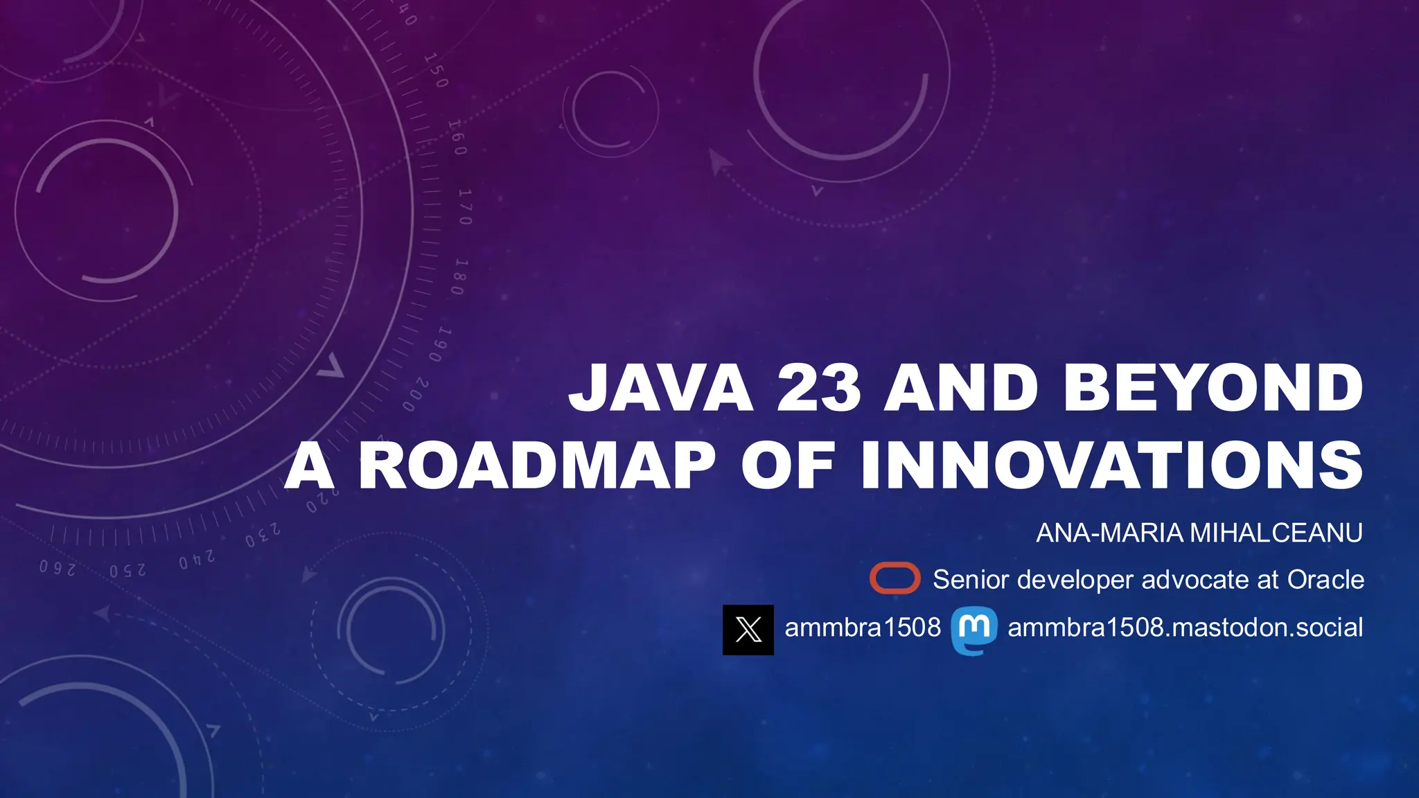 The document outlines the roadmap for Java innovations leading to Java 23, focusing on enhanced features for small application development, improvements in language syntax, and new APIs such as streamlined garbage collection and structured concurrency. Key highlights include project Amber's simplified programming approach and JEPs related to documentation comments, stream enhancements, and memory access. Additionally, it addresses performance challenges and comparisons with other programming languages, emphasizing Java's evolution in efficiency and usability.