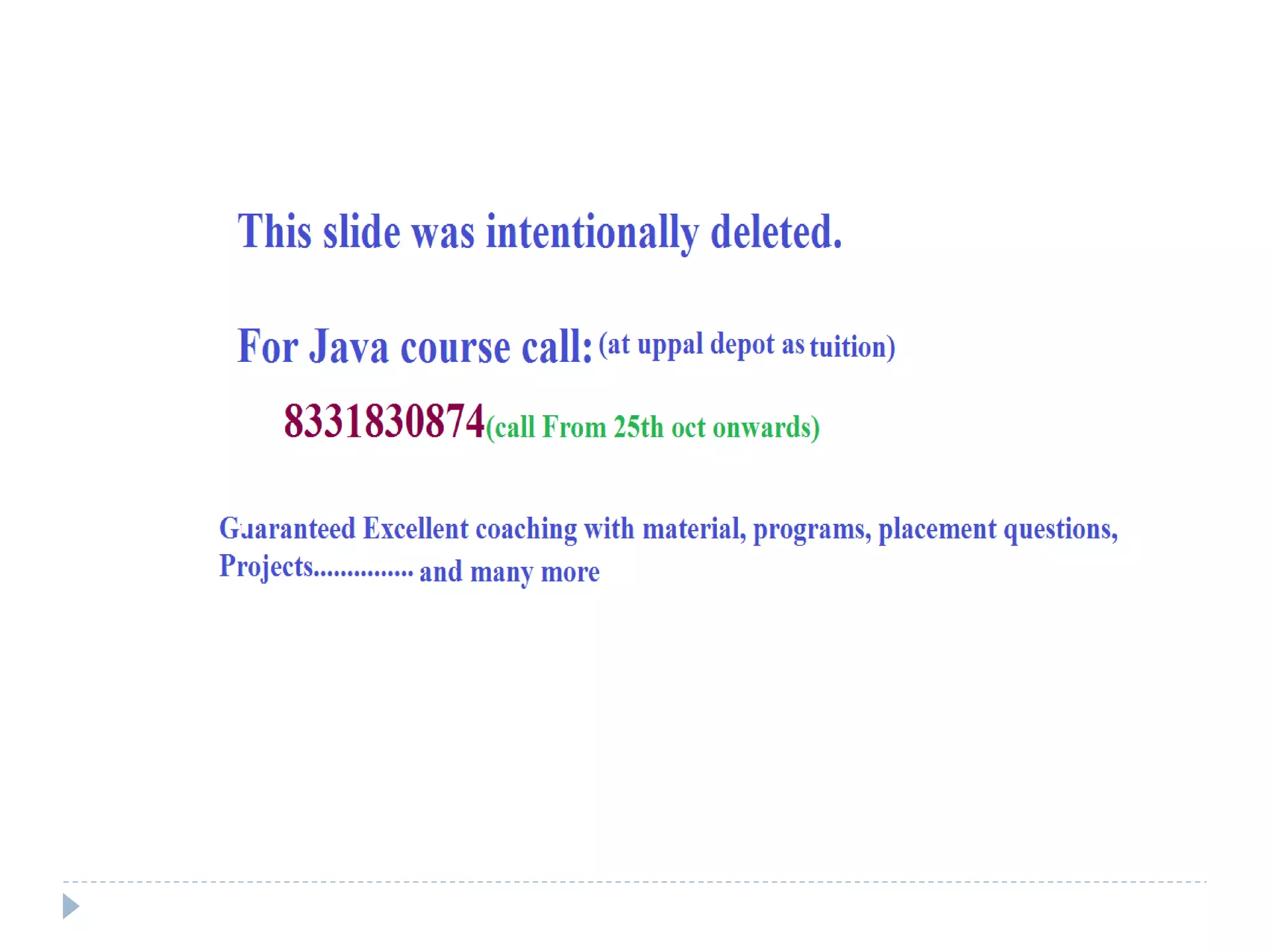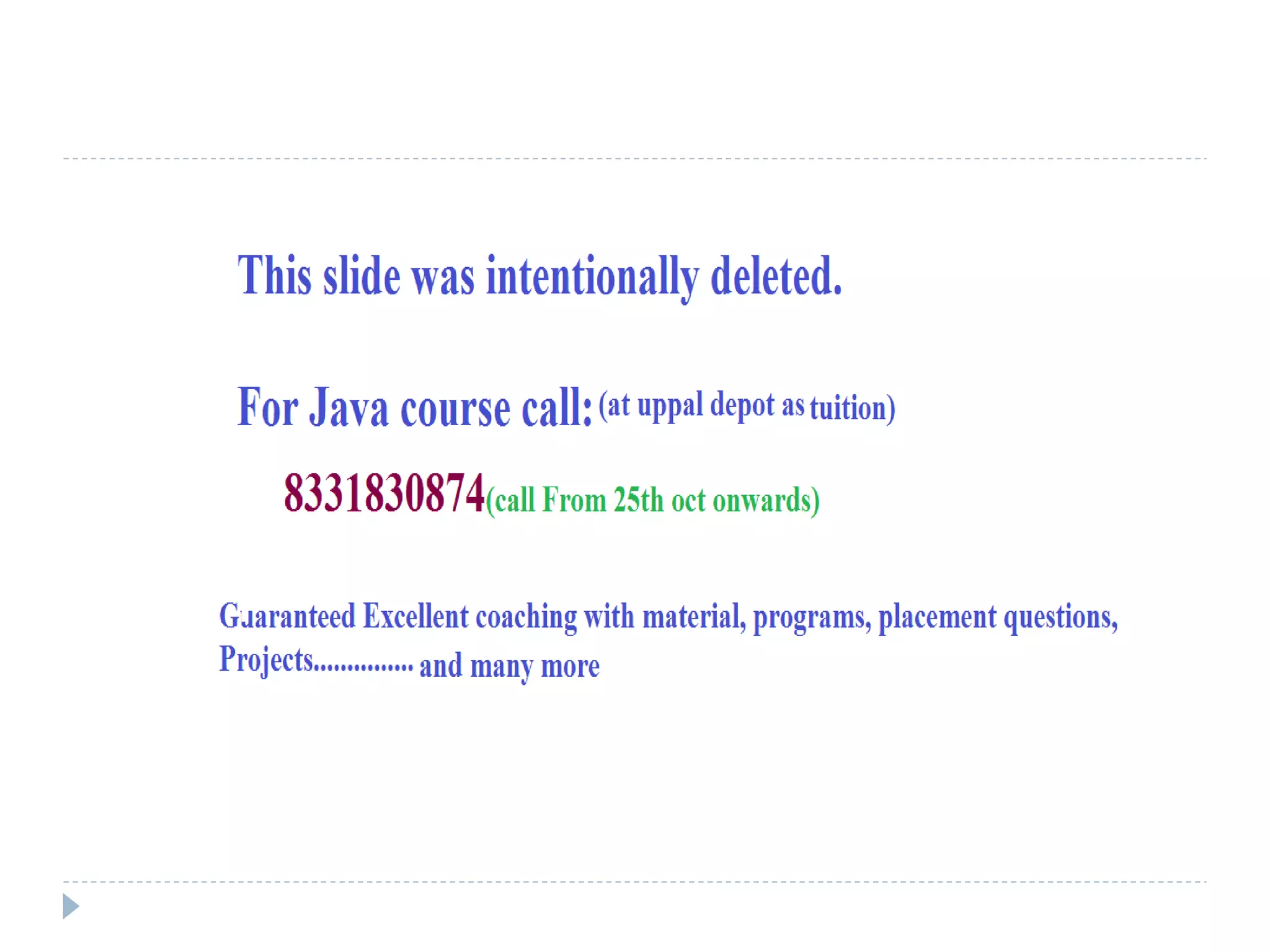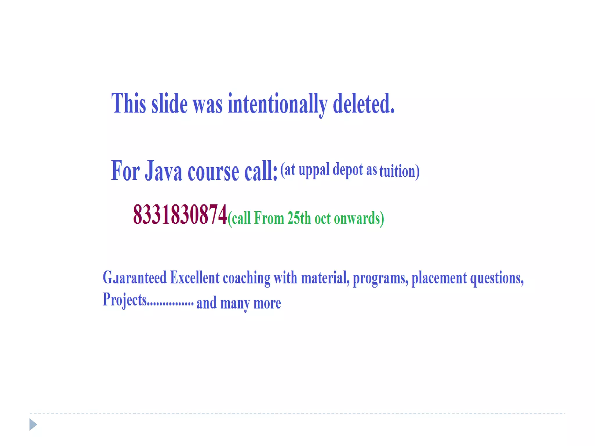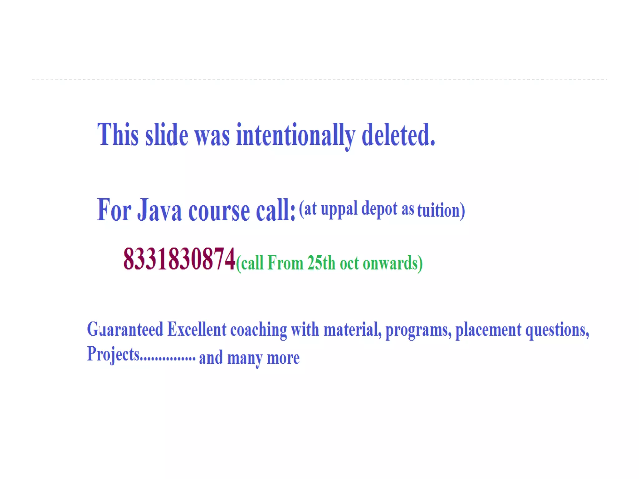 - It discusses Java features like being simple, object-oriented, robust, secure, portable, and supports multithreading.