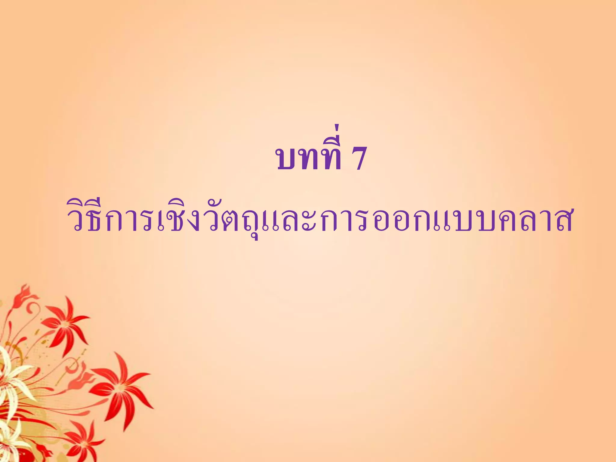 บทที่ 7 วิธีการเชิงวัตถุและการออกแบบคลาส