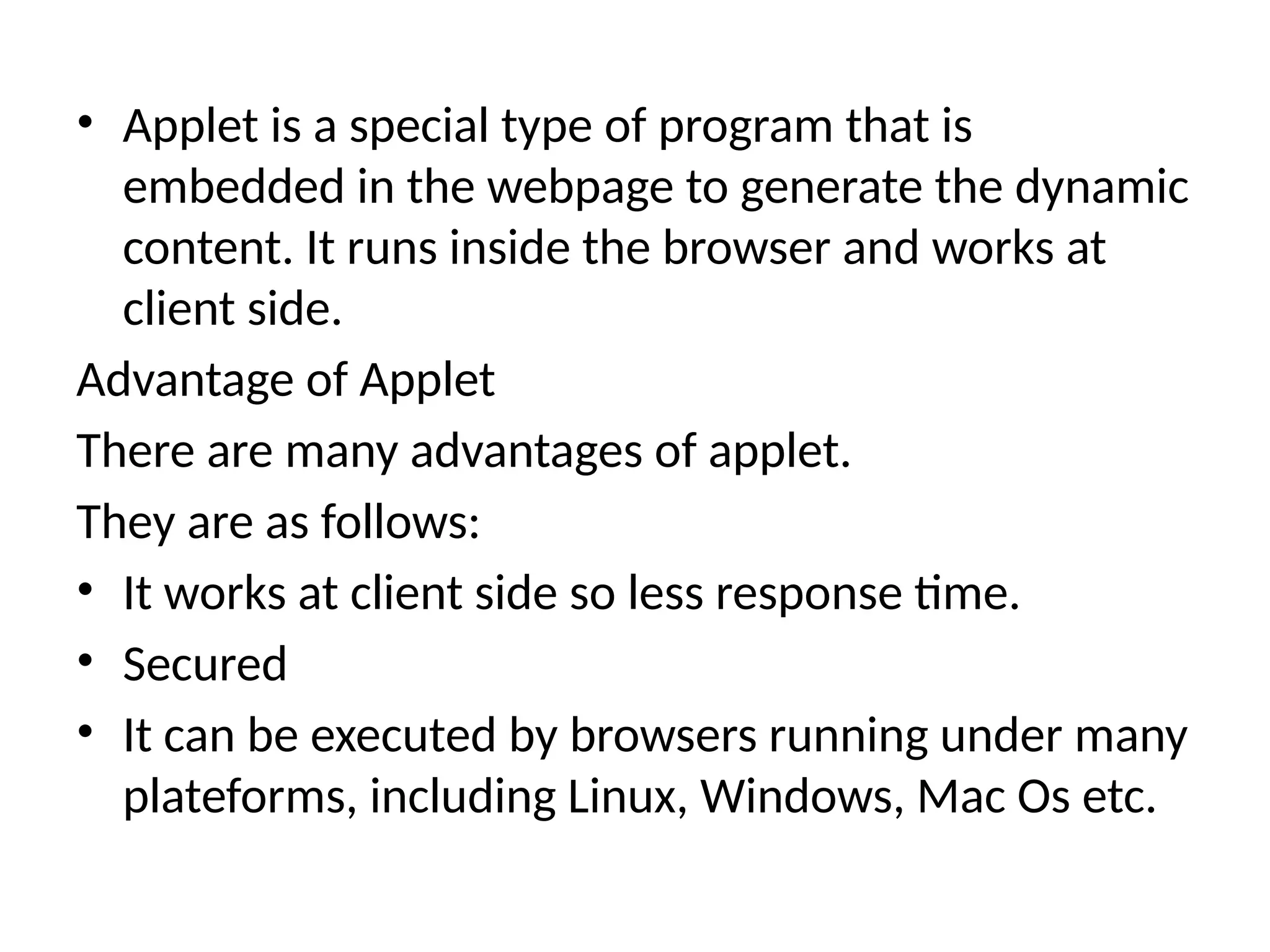 There are many advantages of applet.